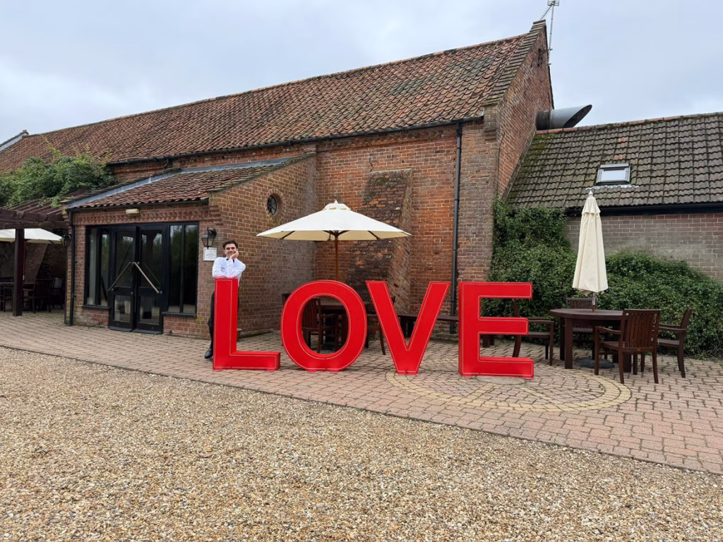 Our stunning “Edge” LOVE Letters stand at an impressive 4 feet tall and span 4.5 meters in width, these letters require a nearby power supply for the LED illumination. They will require a flat surface to sit on.
